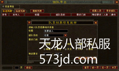 发布信息:玩家可发布队员招募信息和发布申请组队信息,发布之后,信息会显示在组队信息平台中。