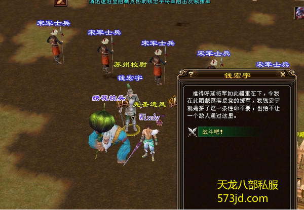 钱宏宇基本追小怪到了下图这个位置,别犹豫,点击他和他保持对话状态,在这儿保持和他对话过程直到第十八轮援兵出完。在这里,你必须保证每十秒点一下钱宏宇,以延续对话过程,这十秒时间你可以打打路过的小怪来打发无聊的时间~~~~