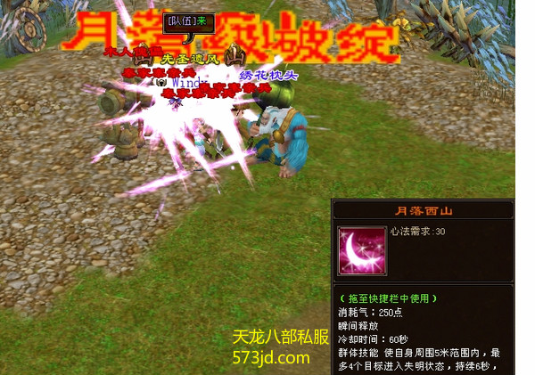 对话钱宏宇,引出第一轮的四只小怪,EM迅速离开BOSS去接近四小怪,遇到小怪不要打,直接用月落西山,