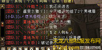 今天晚上要打天龙八部私服发布网全国争霸赛 ,我兴高采烈的把副本过掉。当我刷到团队副本12人的时候,遇见游戏史上从没有遇见过的事情。 我们开始刷喇叭组人副本了 人组好了 我们开刷 进去的第一个怪 发现不对了?