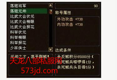1:平反称号----就是靠刷反贼副本获得的积分来兑换的称号,一只士兵1分,一只头目5分,一次副本总计35分。最高级称号为荡寇元帅,90阅历值