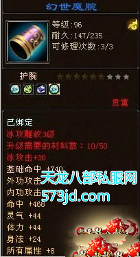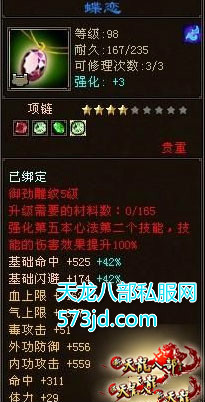 1、项链,有血上限,体力,属性(冰火玄毒)三种属性。