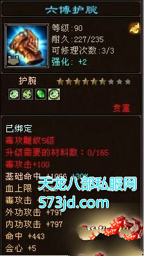 六博护腕没有体力,且命中,内功,属性攻击的点数都不是特别出众,于是可真元的属性唯有血上限。4500的血上限,相当于65点体力,真元效果还是不错的(六博不是适合所有门派使用,这点请慎重)。