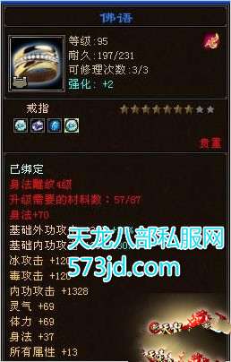 2、则是体力有神器暗器以及龙纹的血上限加成。这也就是雕纹部分装备有身法,但是绝大多数玩家依旧会选择体力雕纹一样,真元比较热门的属性也就是属性,血上限,和体力。